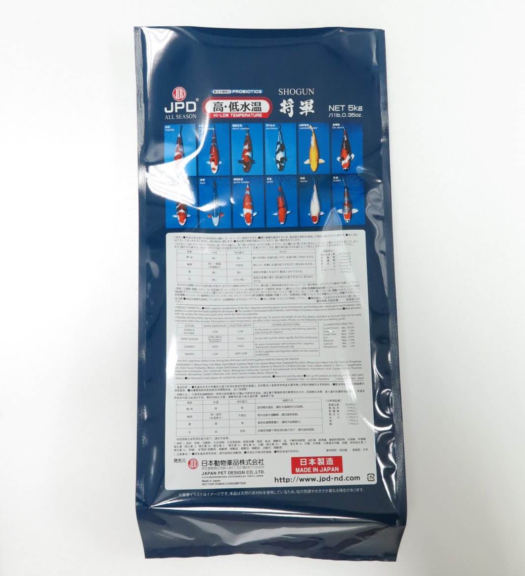 ●白地保護(マンノースを含む乾燥酵母細胞液を配合。マンノースによって錦鯉の表皮の粘膜細胞を活性化。粘膜の分泌を促進します。ポリフェノールは、優れた抗酸化成分で日光の紫外線などによる酸化から錦鯉を守ることが期待されます。)●小麦胚芽を配合(消化・吸収性に優れた小麦胚芽を配合。高水温から低水温まで広い範囲で与えることができるフードです。)●嗜好性の向上(嗜好性に優れた良質な魚粉を配合。錦鯉の嗜好性を刺激するアミノ酸とベタインを強化配合しています。)●善玉生菌の配合(休眠状態の善玉菌を配合。錦鯉の腸内で発芽し、消化吸収を助けます。フンと一緒に排出されて、フンの分解を行います。)