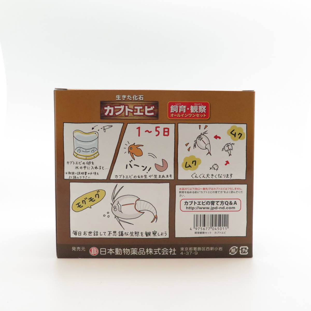 本品の中には、カブトエビの飼育に必要な道具がセットになっています。卵を水に入れると1~5日でフ化し、どんどん成長します。カブトエビを元気に育てるために、本品に入っている“カブトエビの育て方”をよく読んでください。約1ヶ月で3センチぐらいの大きさに成長します。