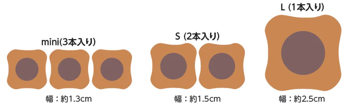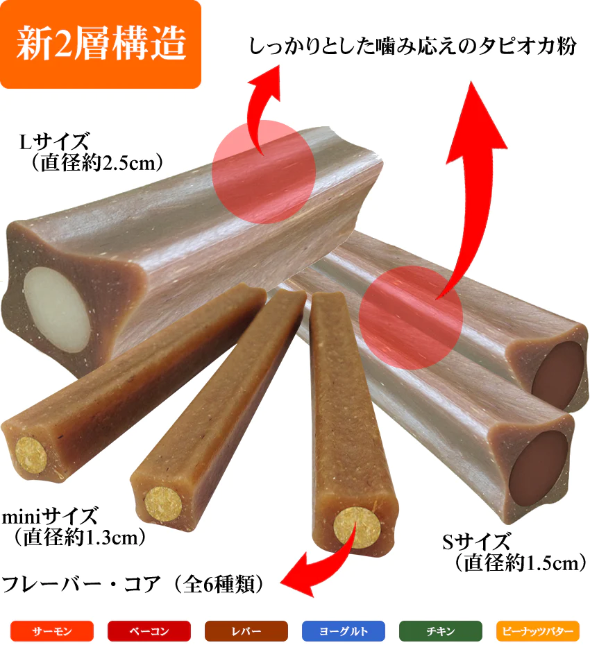 6つのフレーバー×3種類のサイズからワンちゃんに合わせてお選びいただけます♪