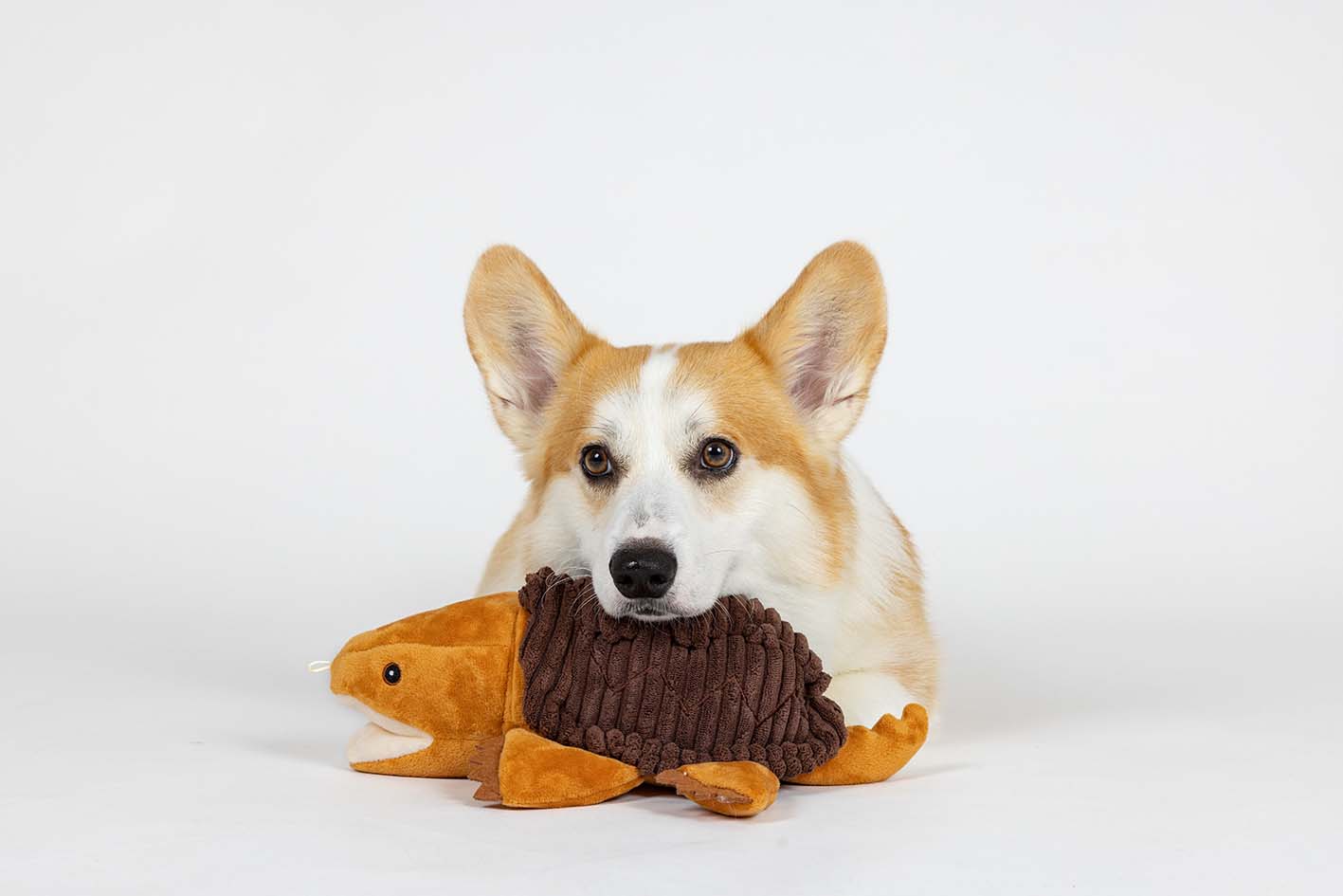 スクイーカーとペットボトルのバリバリ音が犬の興味を惹きつけます。