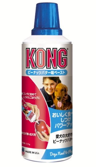 <本体重量> 292g<原産国> アメリカ合衆国<栄養成分>粗タンパク質4%以上粗脂肪19%以上粗繊維1%以下粗灰分6%以下水分54%以下<原材料・成分>?脱脂粉乳、大豆油、乾燥ホエー、ブドウ糖、コーンスターチ、ミネラル類(Na、P、Cl)、デキストリン、酸味料、香料、乳酸菌、酵素、着色料(カラメル色素、アナトー色素)、保存料(ソルビン酸)≪使用方法≫キャップの"PUSH BUTTON"(突起)を押しながら、上に取り外します。ノズルを斜め下に傾け、先端をコング内側面に向け、指でノズル中間部分を押して中身を出します。ノズルを強く押さえすぎると壊れる恐れがありますので、ご注意ください。尚、ドライフードにかけて更においしく、夏はコングにペーストを詰め凍らせた状態(アイスコング)としてもご利用できます。