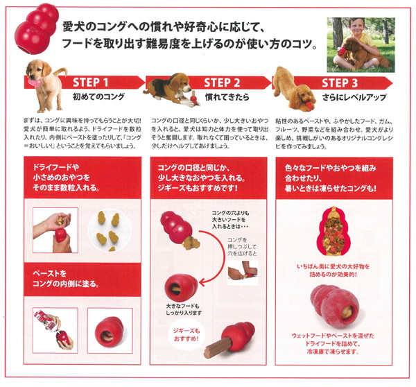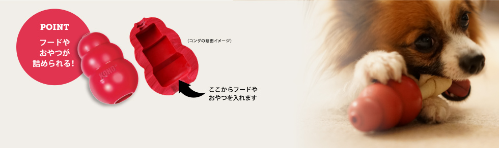 中にペースト製品や犬用おやつをごほうびとして詰めて与えればひとりでおとなしく遊びます。