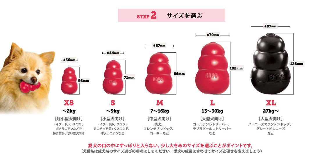 あごの大きさに合ったコングを選ぶことがポイントです。