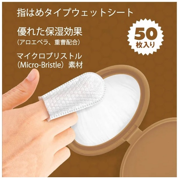 指にはめるタイプで、密度の細かいマイクロブリストル繊維(Micro-Bristol Fabric)のウェットシート。