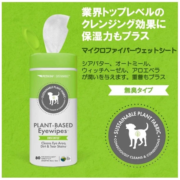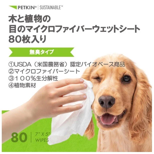 世界で初めてペット用のウェットシートを開発したことでも有名な、ペットキン社の目まわりケア用シート。他では見られない、分厚くて丈夫なマイクロファイバーシートを使用し、業界トップレベルのクレンジング効果を発揮。USDA(米国農務省)認定バイオベース商品で、木や植物からの環境にやさしい素材を採択し、身体をマイルドにケア。マイクロファイバーシートの驚きの洗浄力にシアバター、オートミール、アロエベラ、ウィッチヘーゼルの保湿力・コンディショニング効果が加わりました。パラベンフリー、合成物質不使用。【使用方法】キャップを外し、シートロール中央から適量引き出し、キャップに通して戻してください。【ご注意】用途以外には使用しないでください。子供やペットの手の届かないところに保管してください。