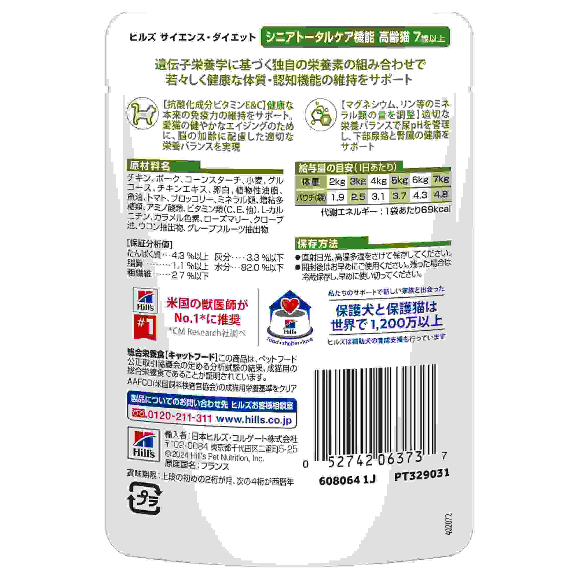 サイエンス・ダイエット シニアトータルケア機能 (7歳以上の高齢猫用) チキン ウェットパウチ 85g