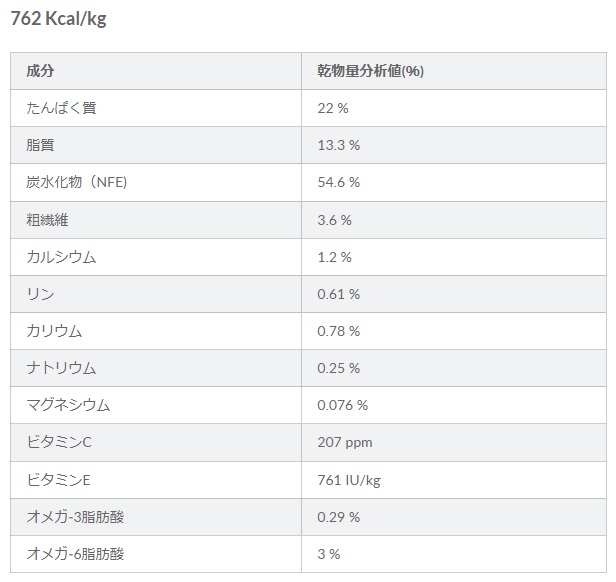 乾物量分析値(%)は平均的な値を表示しているため、パッケージに記載されている値と多少異なる場合がありますので、ご了承ください。