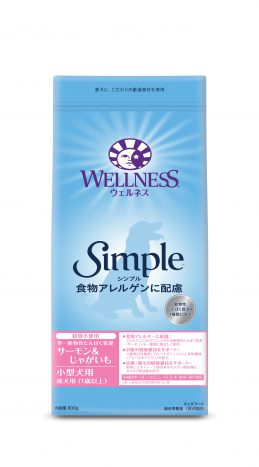 ウェルネスシンプルシリーズは、動物性たんぱく質源を1種類に限定し、原材料の種類を極力少なくすることで、食物アレルギーに配慮した製品です。