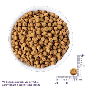 穀物を使わず、高品質の動物性たんぱく質源を第一原材料とし、抗酸化栄養素が豊富な野菜や果物を配合し、バランスのとれた栄養で愛猫の健康をサポート。家禽副産物*、小麦、とうもろこし、着色料、香料 不使用。*鶏、七面鳥などの家禽類の頭、足、腸