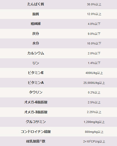 この商品は、ペットフード公正取引協議会の定める分析試験の結果、成猫期の総合栄養食の基準を満たすことが証明されています。