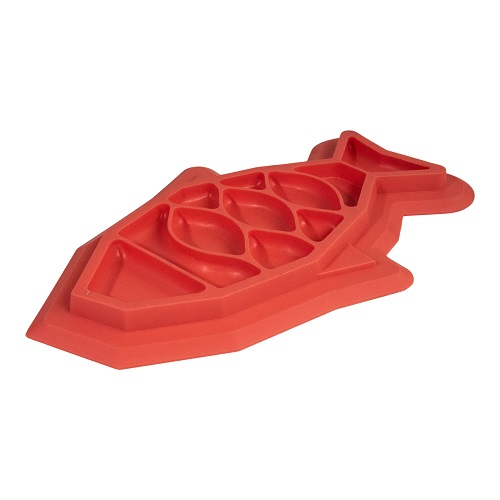 手を使って餌を外に出してから食べる構造になっているので、猫の本能に働きかけ、早食い防止に。