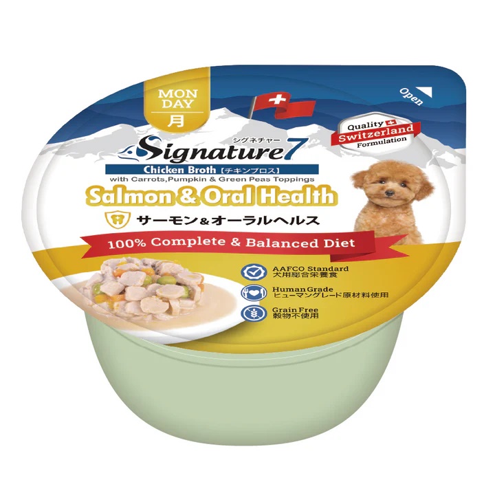 オールステージ・犬用総合栄養食「シグネチャー7」 角切りお肉がとゴロゴロ野菜がたっぷり♪ 食べ応えのある大きさにカット。 うまみをそのまま味わえる贅沢な一品です。 おいしく食べてワンちゃんのからだをトータルサポート♪ ・グレインフリー(穀物不使用でアレルギーに配慮) ・ヒューマングレード原材料使用 ・AAFCOの栄養基準をクリア ※パッケージに記載されている曜日とフレーバーは定められたものではありません。 ライフスタイルや愛犬の体調、好みに合わせてお選びください。