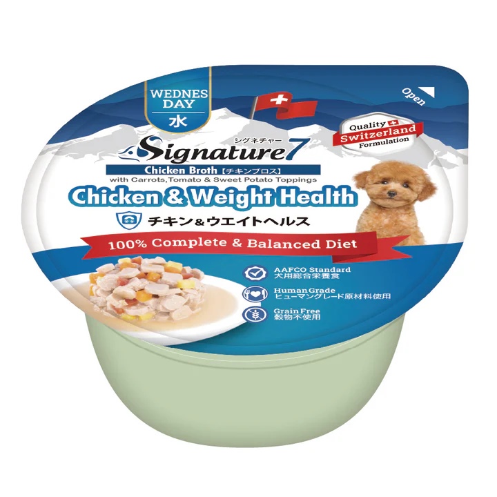 オールステージ・犬用総合栄養食「シグネチャー7」 角切りお肉がとゴロゴロ野菜がたっぷり♪ 食べ応えのある大きさにカット。 うまみをそのまま味わえる贅沢な一品です。 おいしく食べてワンちゃんのからだをトータルサポート♪ ・グレインフリー(穀物不使用でアレルギーに配慮) ・ヒューマングレード原材料使用 ・AAFCOの栄養基準をクリア ※パッケージに記載されている曜日とフレーバーは定められたものではありません。 ライフスタイルや愛犬の体調、好みに合わせてお選びください。