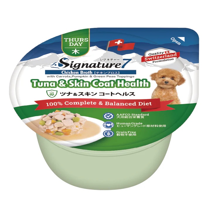 オールステージ・犬用総合栄養食「シグネチャー7」 角切りお肉がとゴロゴロ野菜がたっぷり♪ 食べ応えのある大きさにカット。 うまみをそのまま味わえる贅沢な一品です。 おいしく食べてワンちゃんのからだをトータルサポート♪ ・グレインフリー(穀物不使用でアレルギーに配慮) ・ヒューマングレード原材料使用 ・AAFCOの栄養基準をクリア ※パッケージに記載されている曜日とフレーバーは定められたものではありません。 ライフスタイルや愛犬の体調、好みに合わせてお選びください。