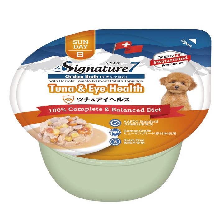 オールステージ・犬用総合栄養食「シグネチャー7」 角切りお肉がとゴロゴロ野菜がたっぷり♪ 食べ応えのある大きさにカット。 うまみをそのまま味わえる贅沢な一品です。 おいしく食べてワンちゃんのからだをトータルサポート♪ ・グレインフリー(穀物不使用でアレルギーに配慮) ・ヒューマングレード原材料使用 ・AAFCOの栄養基準をクリア ※パッケージに記載されている曜日とフレーバーは定められたものではありません。 ライフスタイルや愛犬の体調、好みに合わせてお選びください。