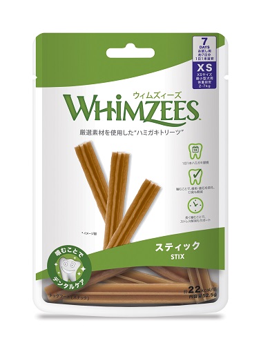 ウィムズィーズの噛み応えは、よりしっかりと長時間噛むことが出来るよう設計されています。 →噛む時間が増えることは、人が歯磨きに時間を掛けることで歯垢の除去を増やすのと同様に、 より多くの歯垢除去をサポートすることができます。 →噛み応えがあることで、噛むことによるストレスの軽減にも役立ちます。噛む時間の消費者調査では、ウィムズィーズのトリーツは30分、長いと1時間噛むことが出来ます。
