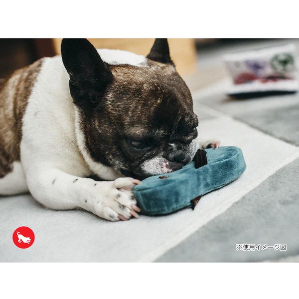 ベロア製で肌触りがよく、ワンちゃんの興味を惹きつける音も鳴ります。形や触り心地だけではなく、作り方にもこだわっており、子供用品と同等の品質基準で生産しています。少しでも丈夫な作りにするために、生地は2枚重ねにし、縫い目もダブルステッチ(2度縫い)を手作業でしています。クッション材には再生ペットボトル繊維を使用し、地球環境にも優しいおもちゃです。また、洗濯機で丸洗いができるので衛生的です。