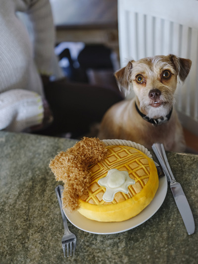 ●チキンとワッフルの両方にスクィーカーが入っており、ワッフル底はカサカサ音が鳴る素材入りです。