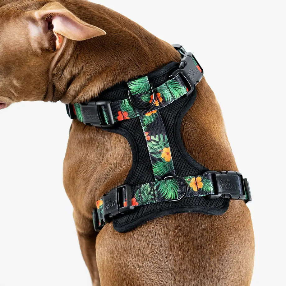 取り付けが簡単な 4 つの YKK バックル (頭の上に物が当たるのを嫌がる犬に最適)