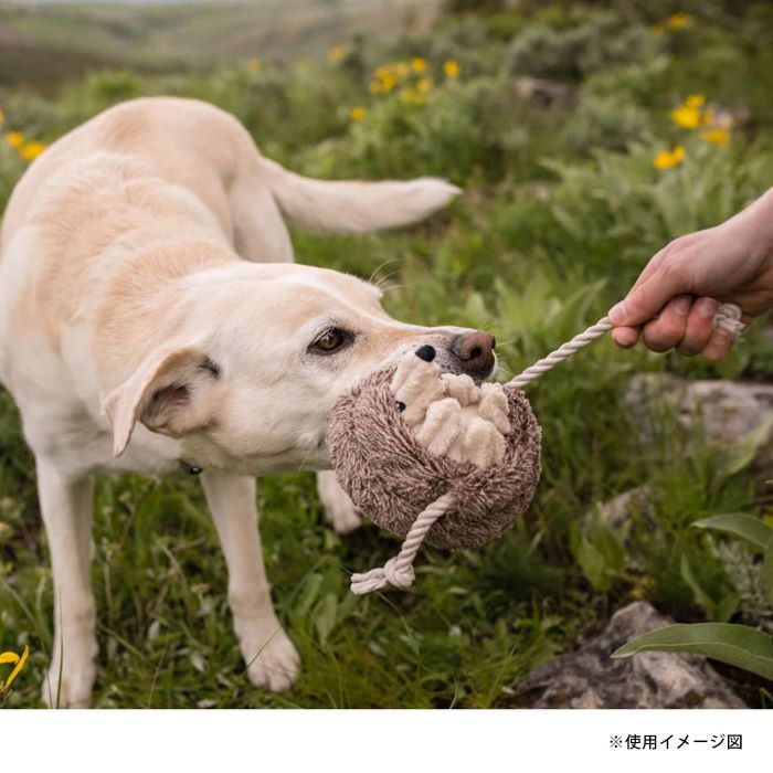 肌触りがよく、ワンちゃんの興味を惹きつける音が鳴ります。形や触り心地だけではなく、作り方にもこだわっており、子供用品と同等の品質基準で生産しています。少しでも丈夫な作りにするために、生地は2枚重ねにし、縫い目もダブルステッチ(2度縫い)を手作業でしています。クッション材には再生ペットボトル繊維を使用し、地球環境にも優しいおもちゃです。また、洗濯機で丸洗いができるので衛生的です。