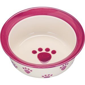 ハンドペイント製であたたかい風合いのパウ(足跡)柄フードボウル。
