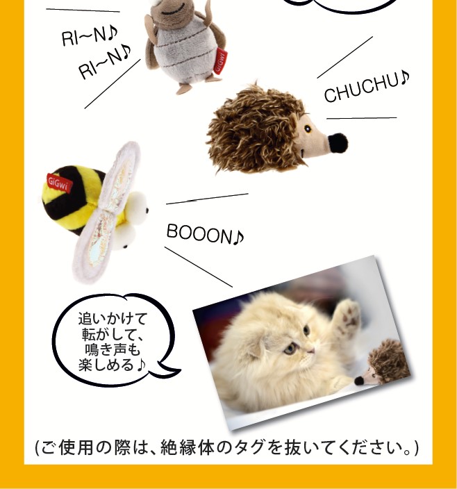 軽く触れるだけで音が出るサウンドチップ入りのキャットトーイ