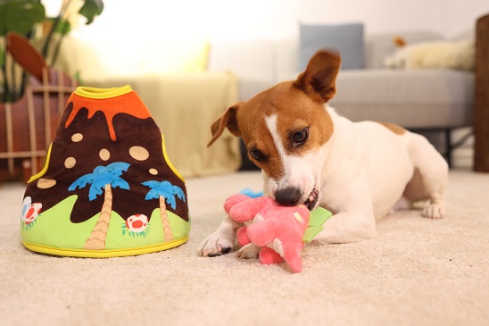 穴の中にミニトーイを隠して遊べるユニークなドッグトーイ♪