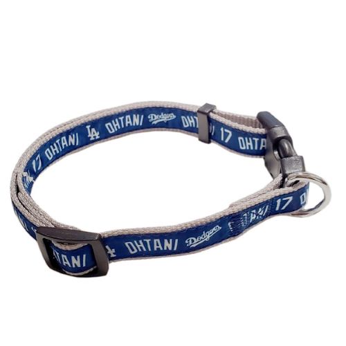 MLBの公式、大谷翔平選手モデルのペットグッズが登場。メジャーリーグファン必見!!ロサンゼルス ドジャース 、大谷翔平選手モデル。ワンタッチバックルの犬用首輪。ツヤツヤとした光沢のあるサテン生地。お出かけしても注目されること間違いなし☆