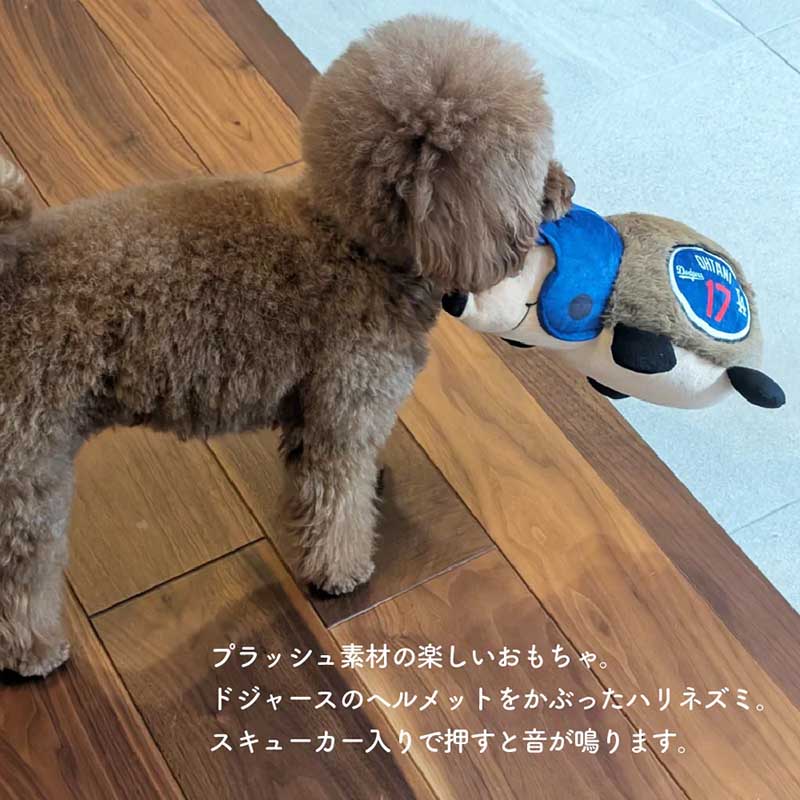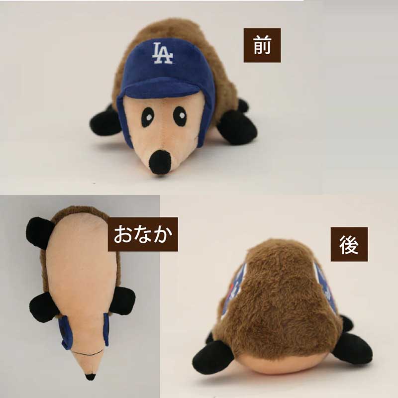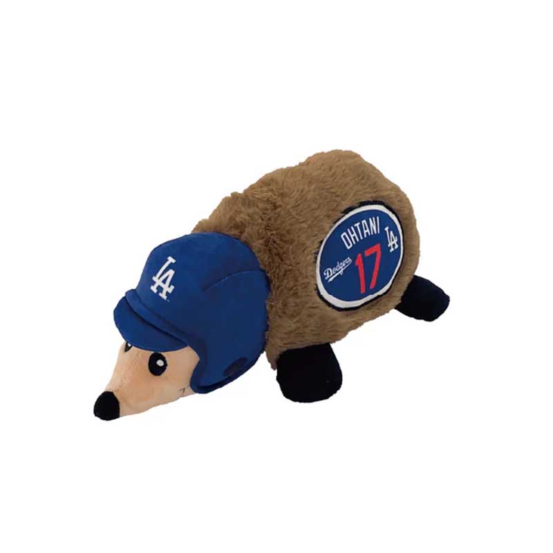 MLBの公式、大谷翔平選手モデルのペットグッズ。 メジャーリーグファン必見!! プラッシュ素材の楽しいおもちゃ。 ドジャースのヘルメットをかぶったハリネズミ、スキューカー入りで押すと音が鳴ります。