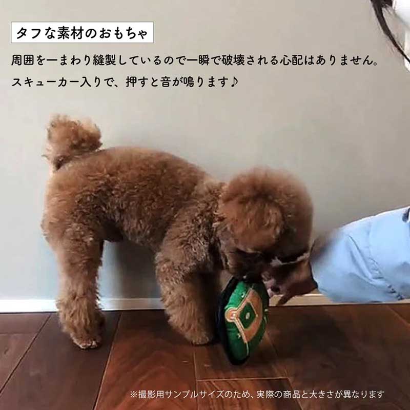 MLBの公式、大谷翔平選手モデルのペットグッズ。 メジャーリーグファン必見!! タフな素材のおもちゃ、周囲を一まわり縫製しているので一瞬で破壊される心配はありません。スキューカー入りで押すと音が鳴ります。