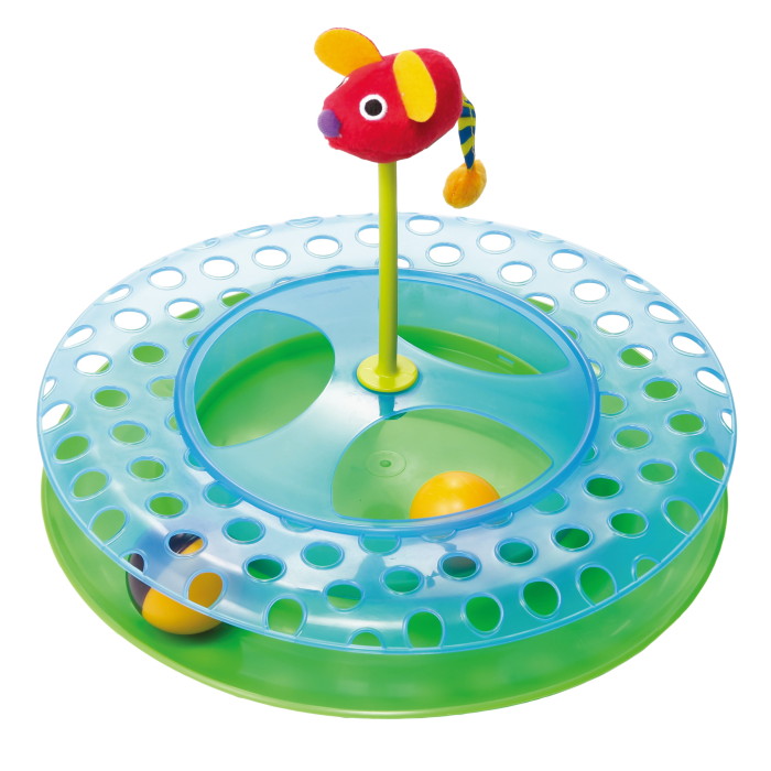 外側のレーンと中心のポケットの2カ所で遊ぶことができ、多頭飼いのファミリーにもネズミのおもちゃの中にはキャットニップが入っているので、猫の興味を惹きつけます。