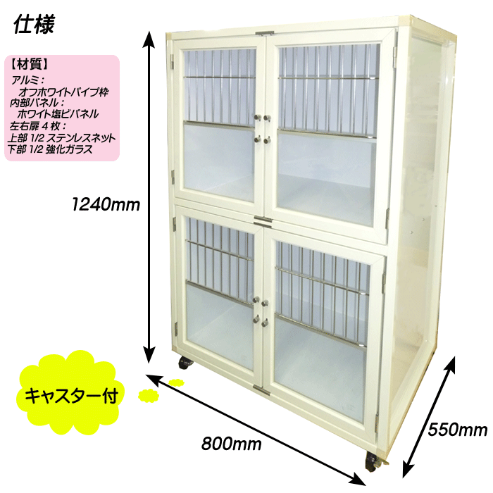 ●扉:ステンレスネット(右) 強化ガラス(左)