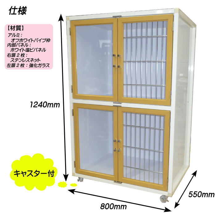 ●商品名:2段HOTEL犬舎 木目扉)HWM800G●サイズ:W800×D550×H1240mm キャスター含む●外枠:アルミパイプオフホワイト●壁面:塩ビパネル●扉:ステンレスネット(右) 強化ガラス(左)●販売元:PLASコーポレーション*仕様・性能は、予告なく変更する場合がありますのでご了承ください。。