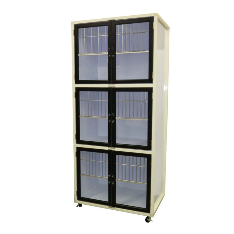 扉下半分が強化ガラスの3段犬舎 間仕切りなしタイプ