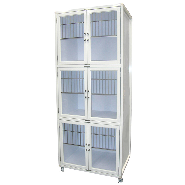 扉下半分が強化ガラスの3段犬舎 間仕切りなしタイプ