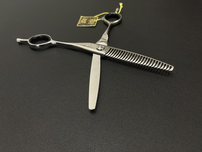 ステンレス鋼とコバルト鋼の積層構造刃を採用。指紋と同じく同一の模様が2丁と無いので、所有する喜びも倍増です!積層材は日本刀と同様にスプリング効果が有り、カットフィーリングが従来品と比べ各段に優しくなっております。存在感と使い心地が光る逸品シザーです。