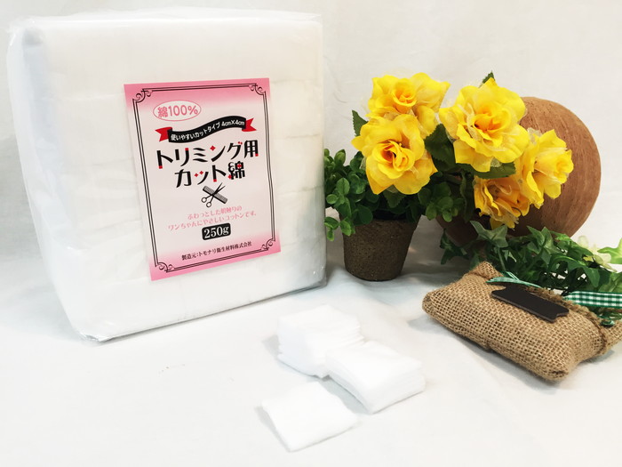 お肌にやさしい トリミング用カット綿 100%コットン 250g (1050枚入り) 4cm×4cm