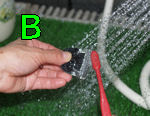 ・水洗いの際、上刃と下刃が開かないタイプは刃を左右にスライドさせ毛を洗い落として下さい(B)。