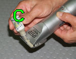 ・本体にセットし、刃先の上から【シャークA】を滴下します(C)。スイッチを入れ3~5分間駆動させます。