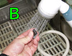・替え刃を本体からはずし(A)、毛髪等の汚れを落とすために水洗いをして下さい。
