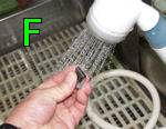 ・水洗いをしたらドライヤーでよく乾燥させ(F)、その後潤滑油をつけます(H)。