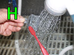 ・4~5分間駆動した後、本体から刃を取り外し分解し、各部品を水道で水洗いします(H)。
