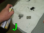 ・乾燥したら潤滑油を上刃と下刃につけたのちバリカン刃を組み立てます(J)。