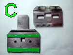 ・2ヶ所に【バリカン君S】をつけて(C)、バリカン刃を組み立てます。ナットを右に締め切ってから、1回転必ず緩めます(左に回す)。