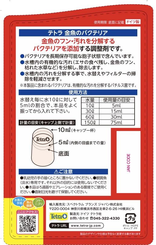 ●バクテリアを長期保存可能な胞子状態で含んでいます。●水槽内の有機的な汚れ(エサの食べ残し、金魚のフン、枯れた水草など)を分解し、除去します。●水槽内の汚れを分解することで、水換えやフィルターの掃除を軽減させます。