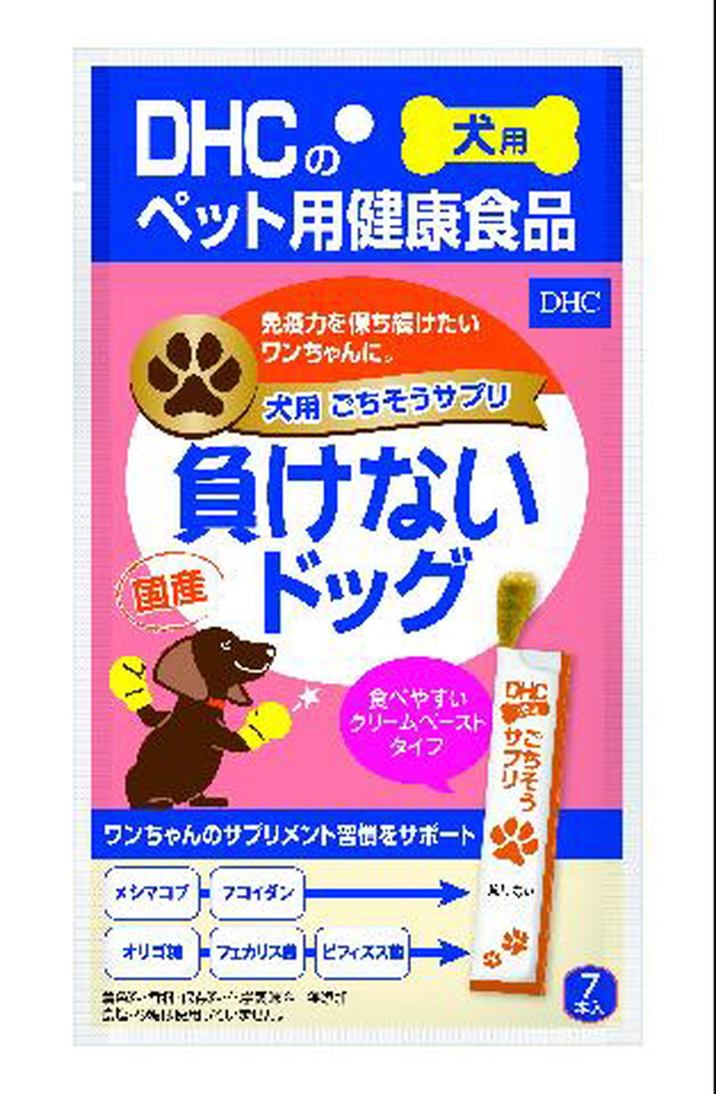 『犬用 国産 ごちそうサプリ 負けないドッグ』は、気になる免疫力にアプローチ※する、国産鶏肉の旨みたっぷりのおいしいクリームペーストタイプのサプリメントです。 メシマコブ、フコイダンなどの健康成分で免疫力をバックアップ※。さらに、オリゴ糖、フェカリス菌、ビフィズス菌がすこやかな環境をキープします。 そのままではもちろん、いつものフードにかけてもOK! 食べやすく与えやすいため、サプリメント習慣のスタートにもおすすめです。 持ち運びに便利なスティックタイプ。いつでもどこでもワンちゃんの健康に役立ちます。 食塩・砂糖不使用/着色料・香料・保存料・化学調味料 無添加/国産 ※健康維持により