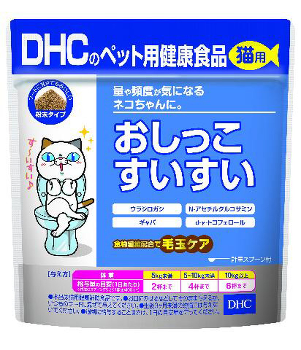 『猫用 国産 おしっこすいすい』は、ミネラル含有量を調整し、トラブルをくり返しやすいネコちゃんの下部尿路の健康に配慮した猫用健康補助食品です。 すいすいサポート成分として、ウラジロガシをはじめ、N-アセチルグルコサミン、ギャバ、d-γ-トコフェロールを配合。快適な毎日をサポートします。 また、食物繊維配合なので毛玉ケアにもOK! ネコちゃん好みのかつお節味にした粉末タイプ。 そのままでも、フードに混ぜてもおいしく食べられます。 食塩・砂糖不使用/着色料・香料・保存料・化学調味料 無添加/国産