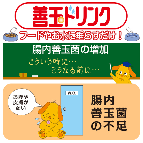 特長 主な成分は微生物が作り出す「ペット・人・環境」に安全で有用な活性物質です。 原材料に化学物質などは一切使用しておりません。 摂取しやすく吸収のよい液体タイプです。