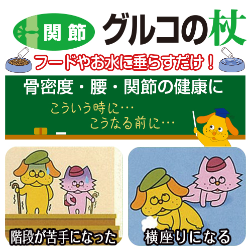 特長 腰関節の構成部分となるグルコサミンやコンドロイチンに加え、骨密度のペプチド他カルシウム、ビタミンD3も加えています。 液体ですので吸収も早く与えやすいです。 肥満傾向にあるペットの関節の健康維持におすすめです。