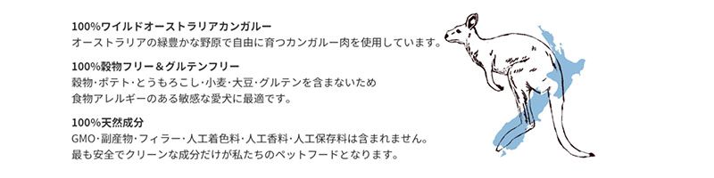 世界で最もクリーンな国の1つであるニュージーランドで加工された、オーストラリア産のワイルドカンガルー肉を愛犬に。